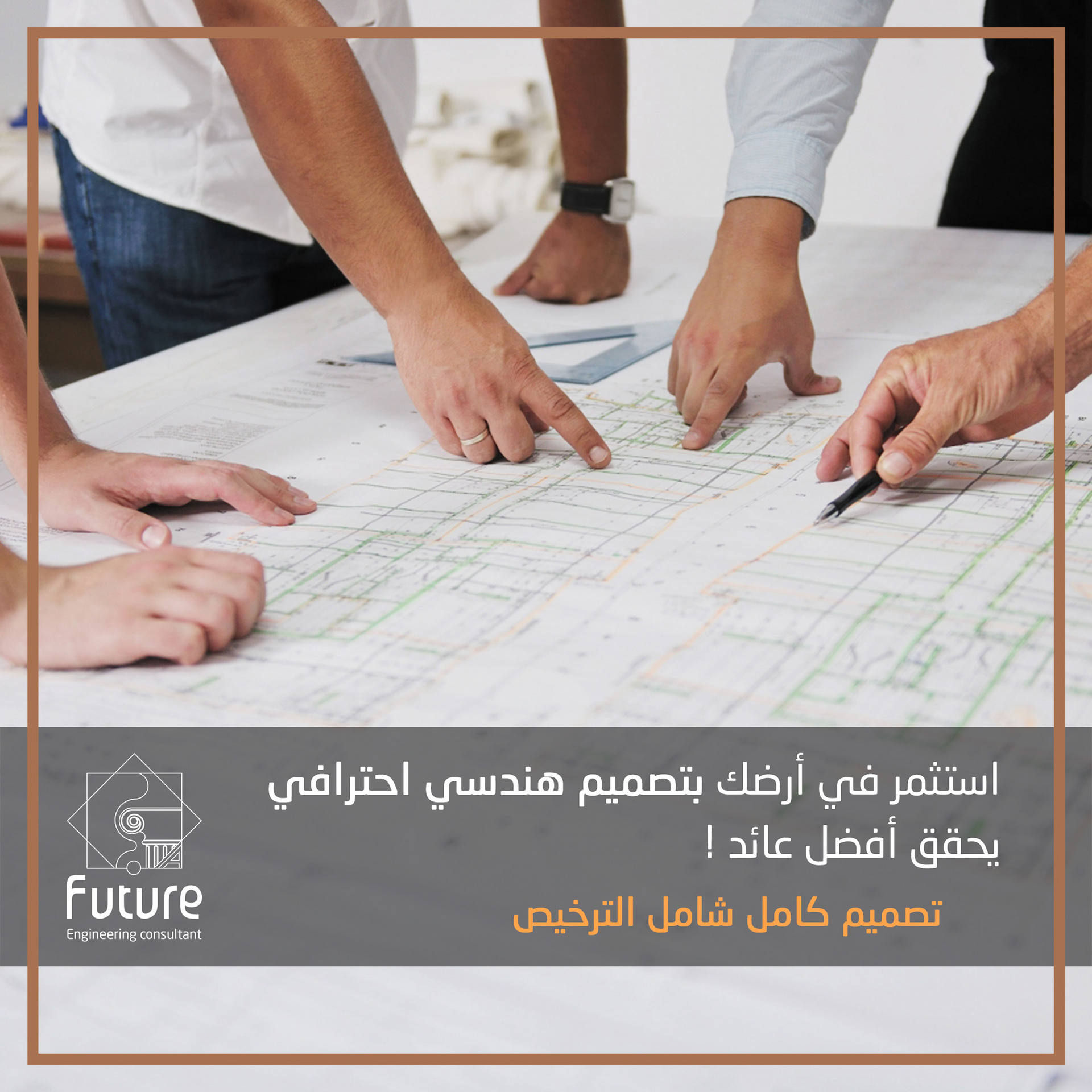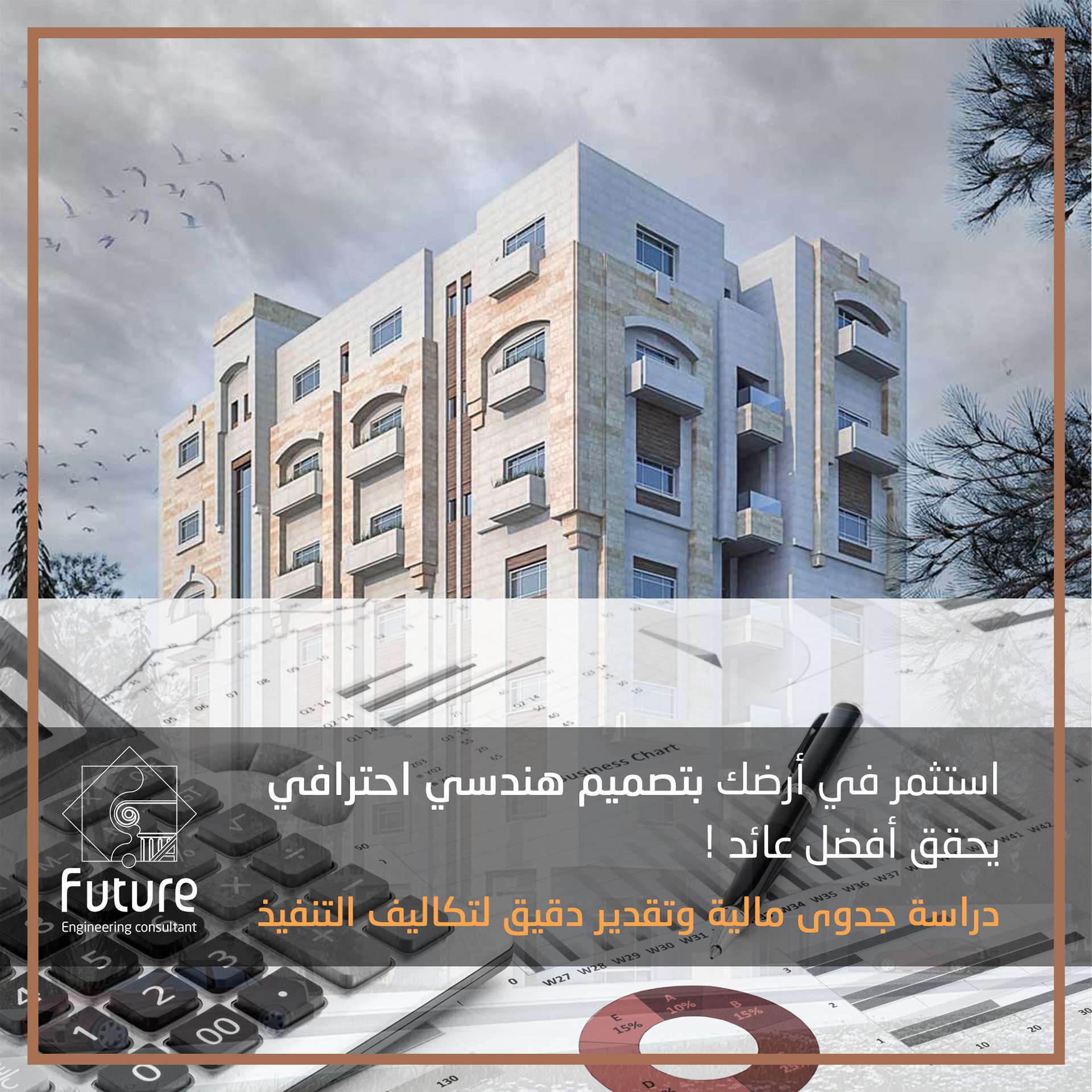 فـيوتشر الهندسي الاستشاري بإدارة المهندس الاستشاري فراس حاتم الزاغة يقدّم لك باقة كاملة لبناء عمارة ناجحة بتصميم جميل، تكاليف مدروسة، وعائد استثماري مضمون
