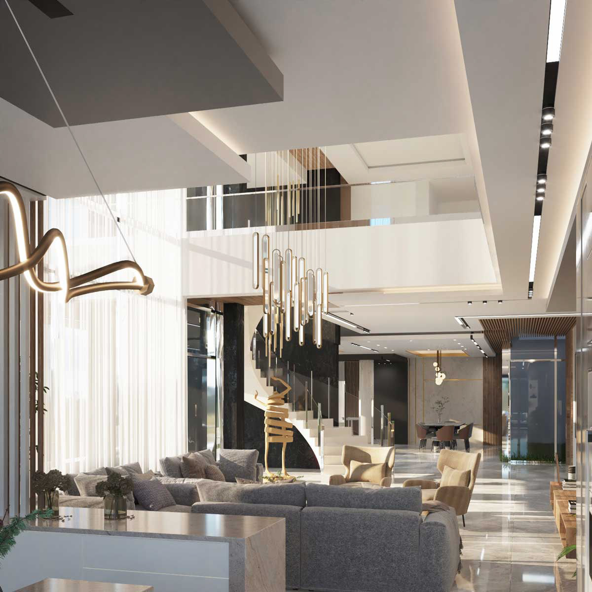 التصميم الداخلي لقاعة معيشة (فيلا نوفل)