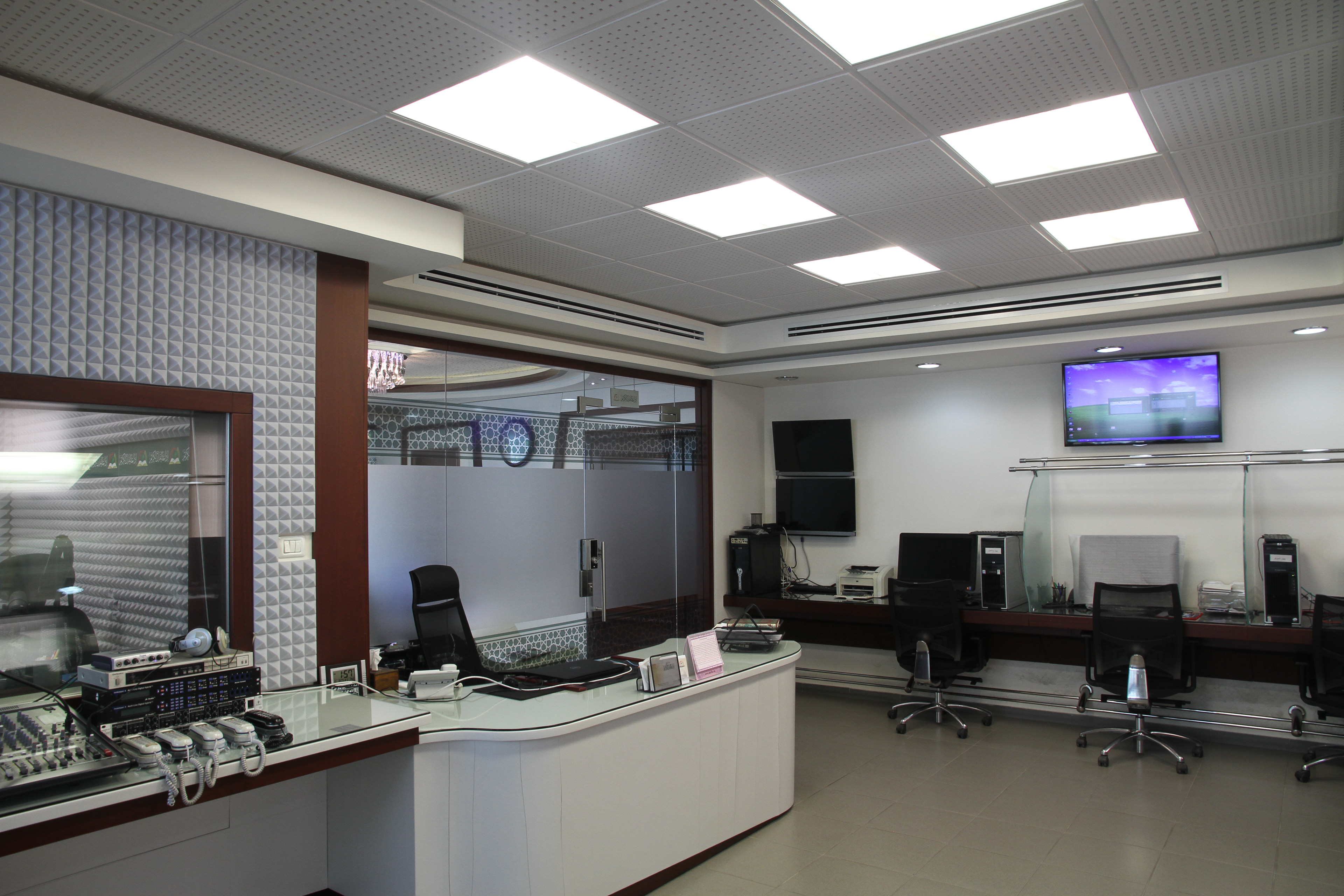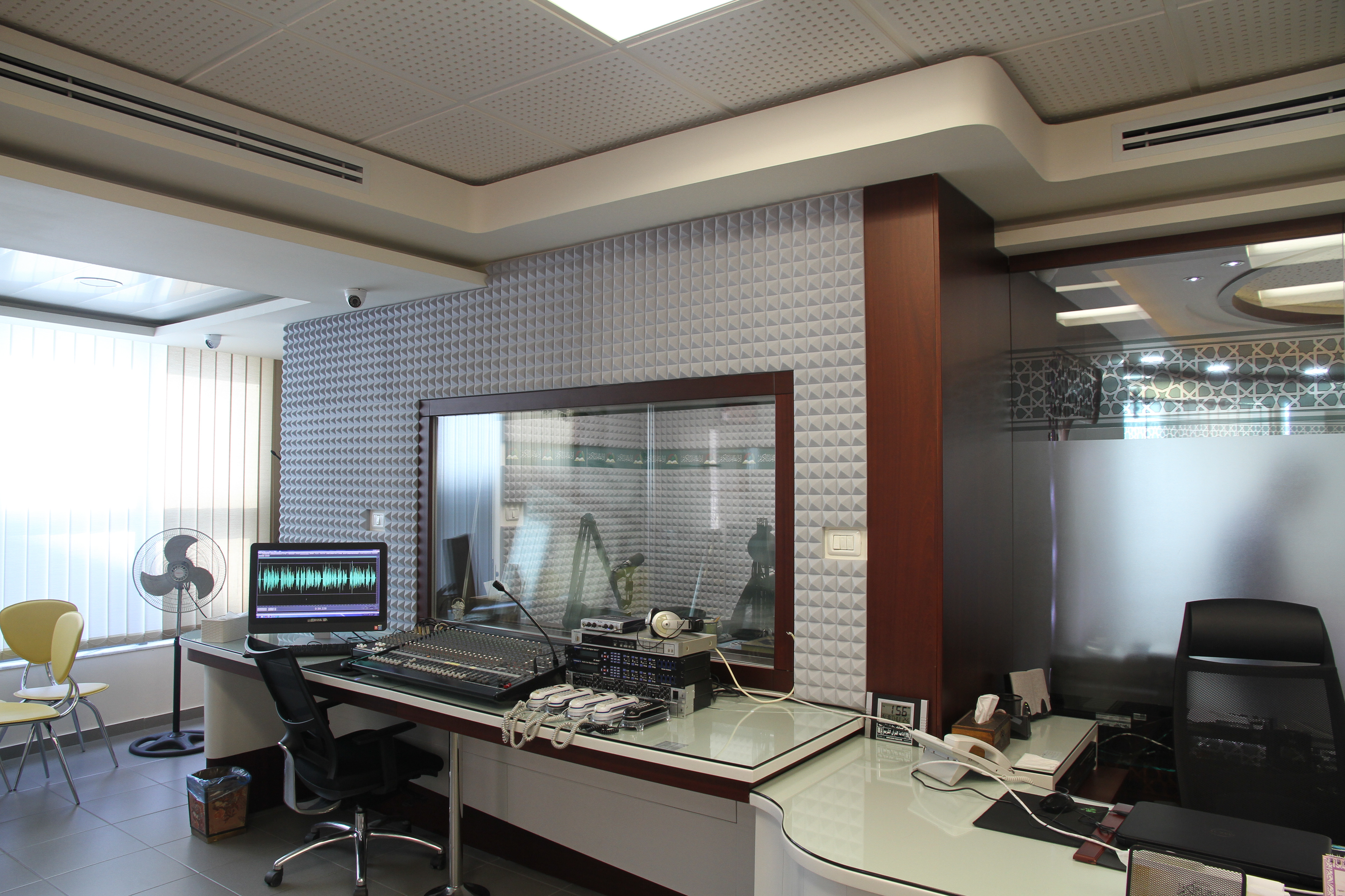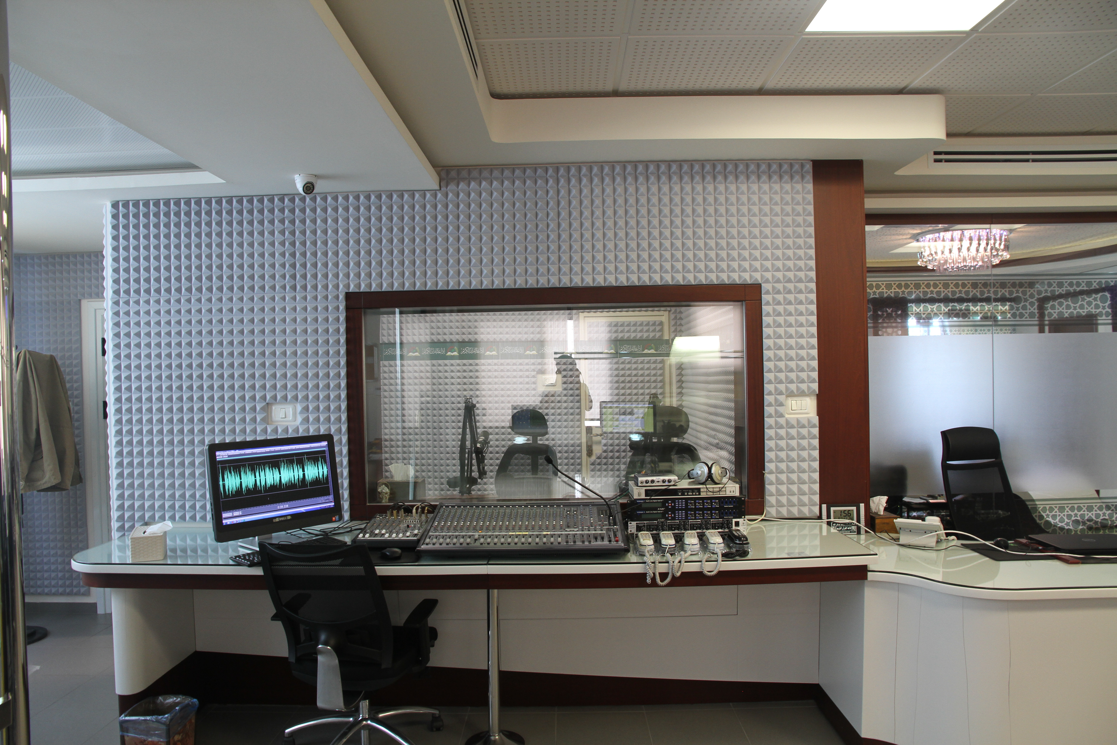 ومن أجل تحقيق أقصى قدر من الأداء في إنتاج البرامج القرآنية والتلاوات، تم تضمين نظام عزل صوتي متقدم في التصميم. يضمن هذا النظام أن تكون الاستوديوهات هادئة ومعزولة تمامًا من الضوضاء الخارجية، مما يضمن جودة الإنتاج الصوتي