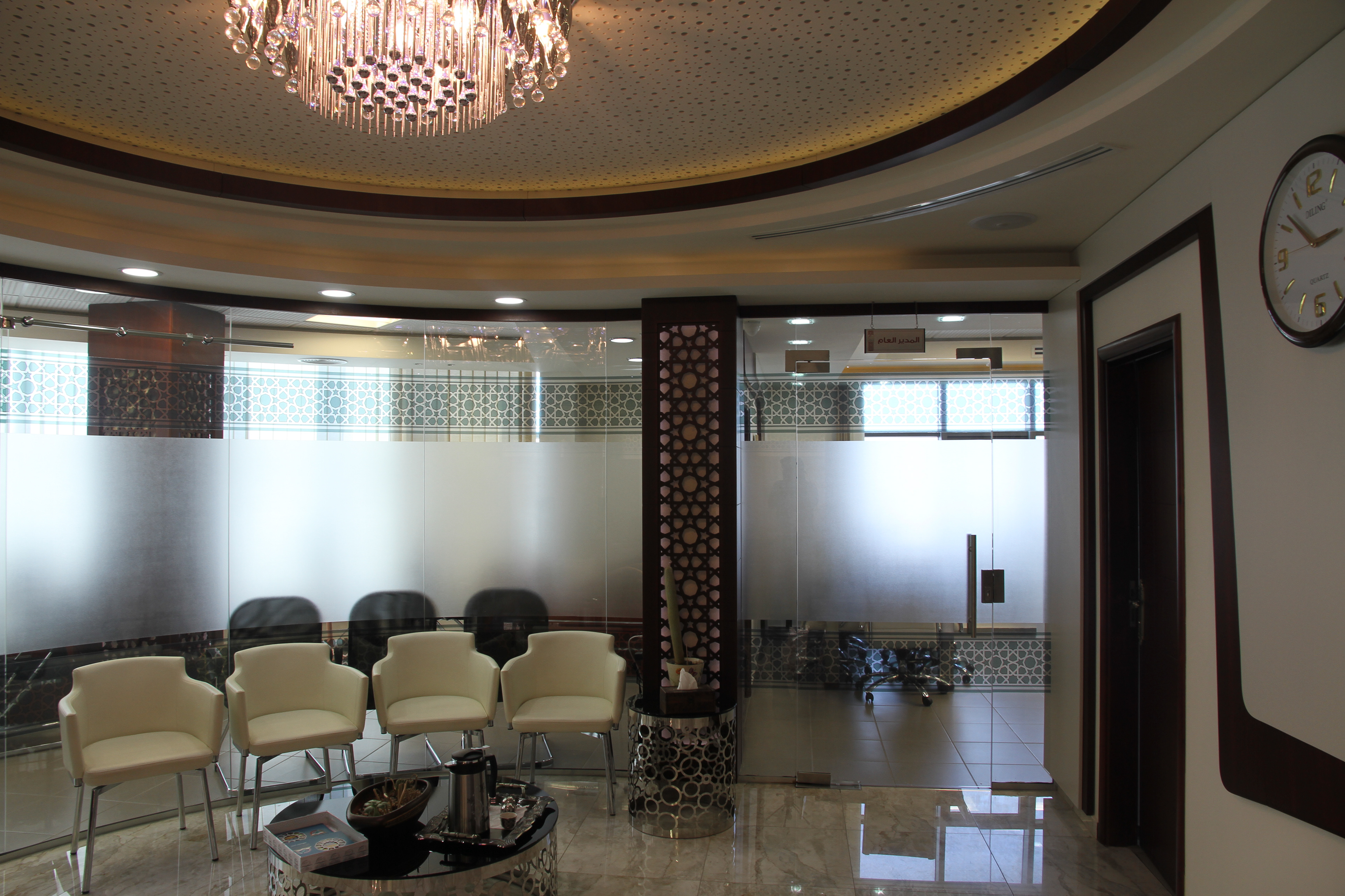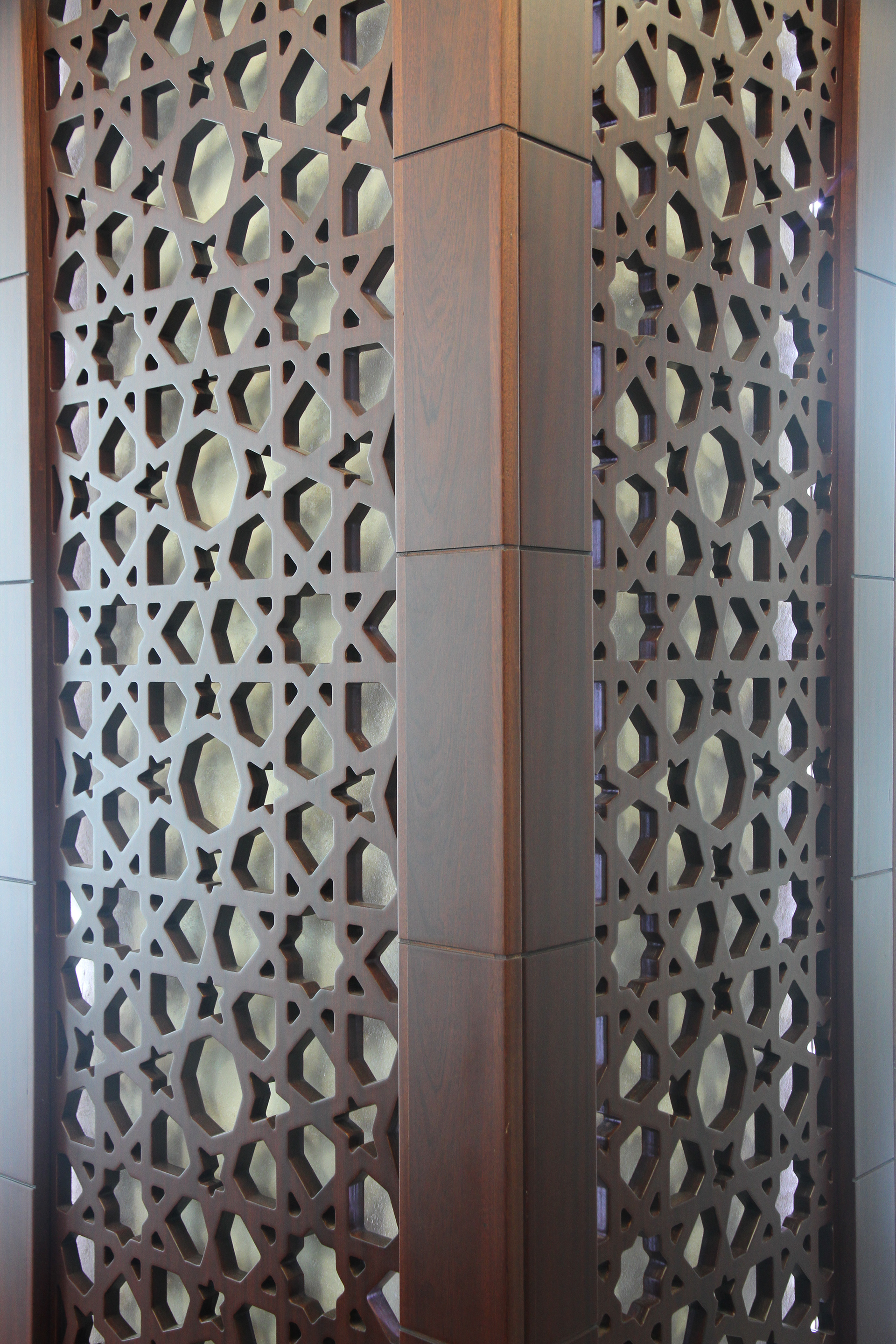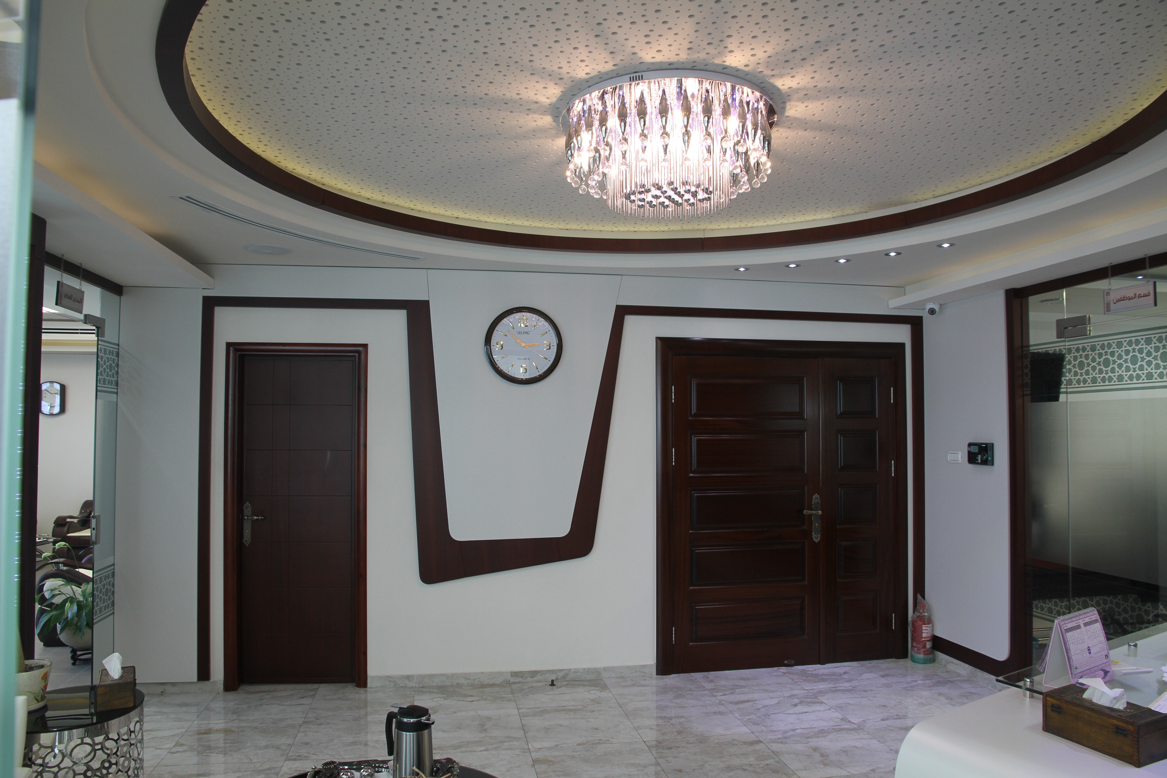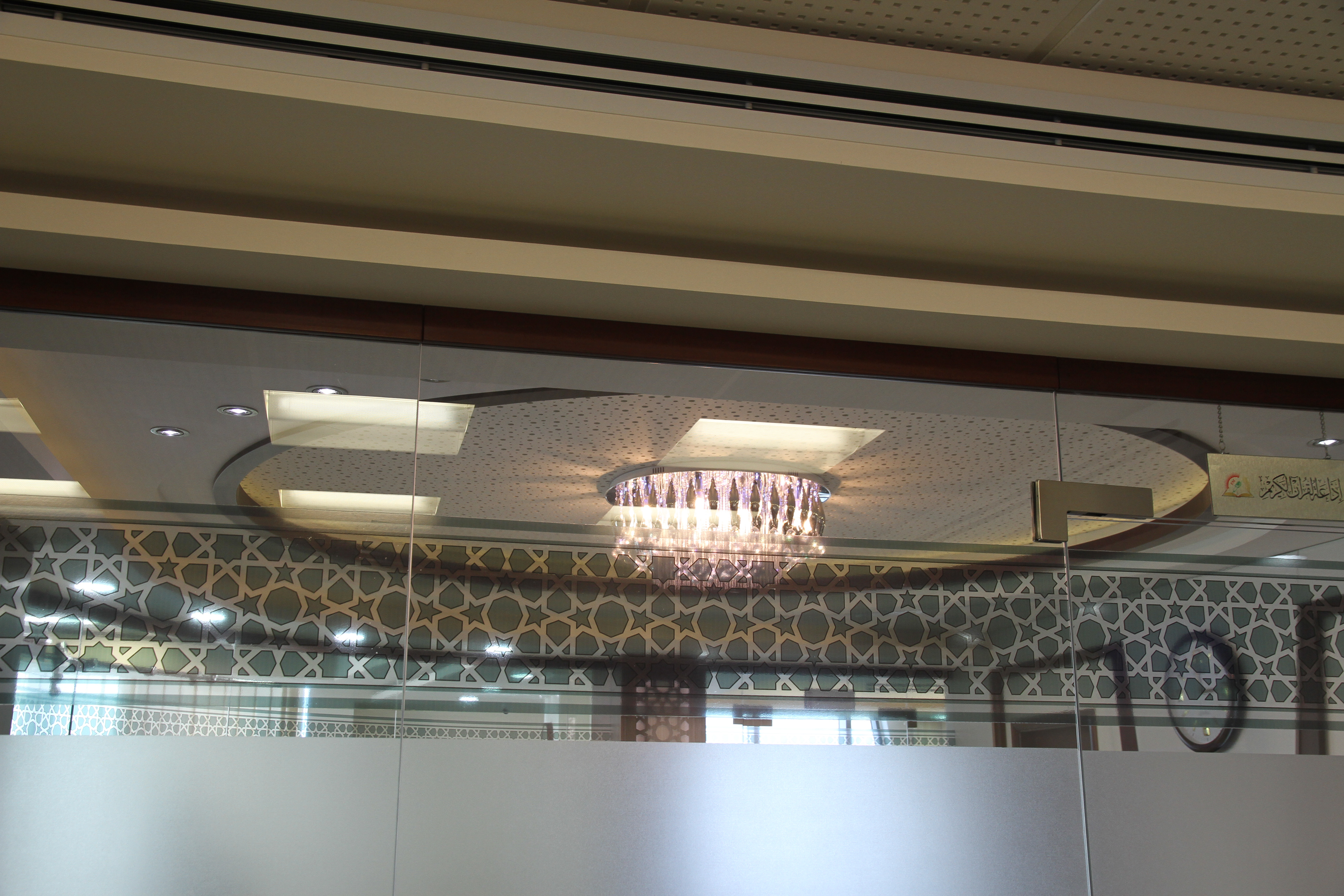 يتميز التصميم الداخلي بالعراقة والأصالة، حيث تم استخدام الزخارف الإسلامية الفاخرة في الديكورات والتفاصيل الداخلية. تم اختيار الألوان بعناية لتعكس الهدوء والتأمل